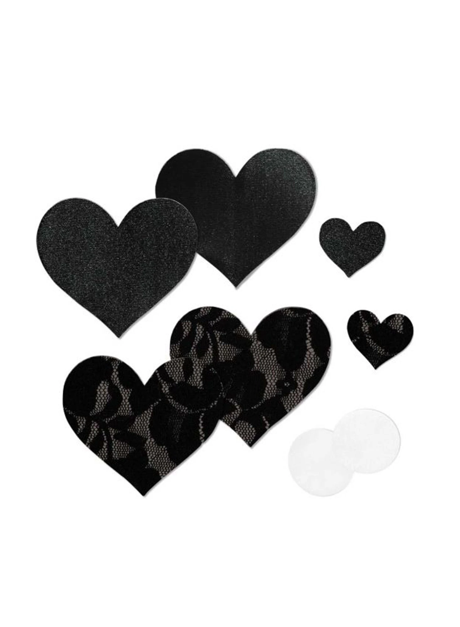 Heart eyes. Black Heart Nippies from Bristol Six. Set includes black satin and black lace petals. Made with exclusive soft-stretch adhesive technology for the most comfortable coverage possible. Wear the Magnolia Lace Ouvert Panty for an unforgettable after dark look.
