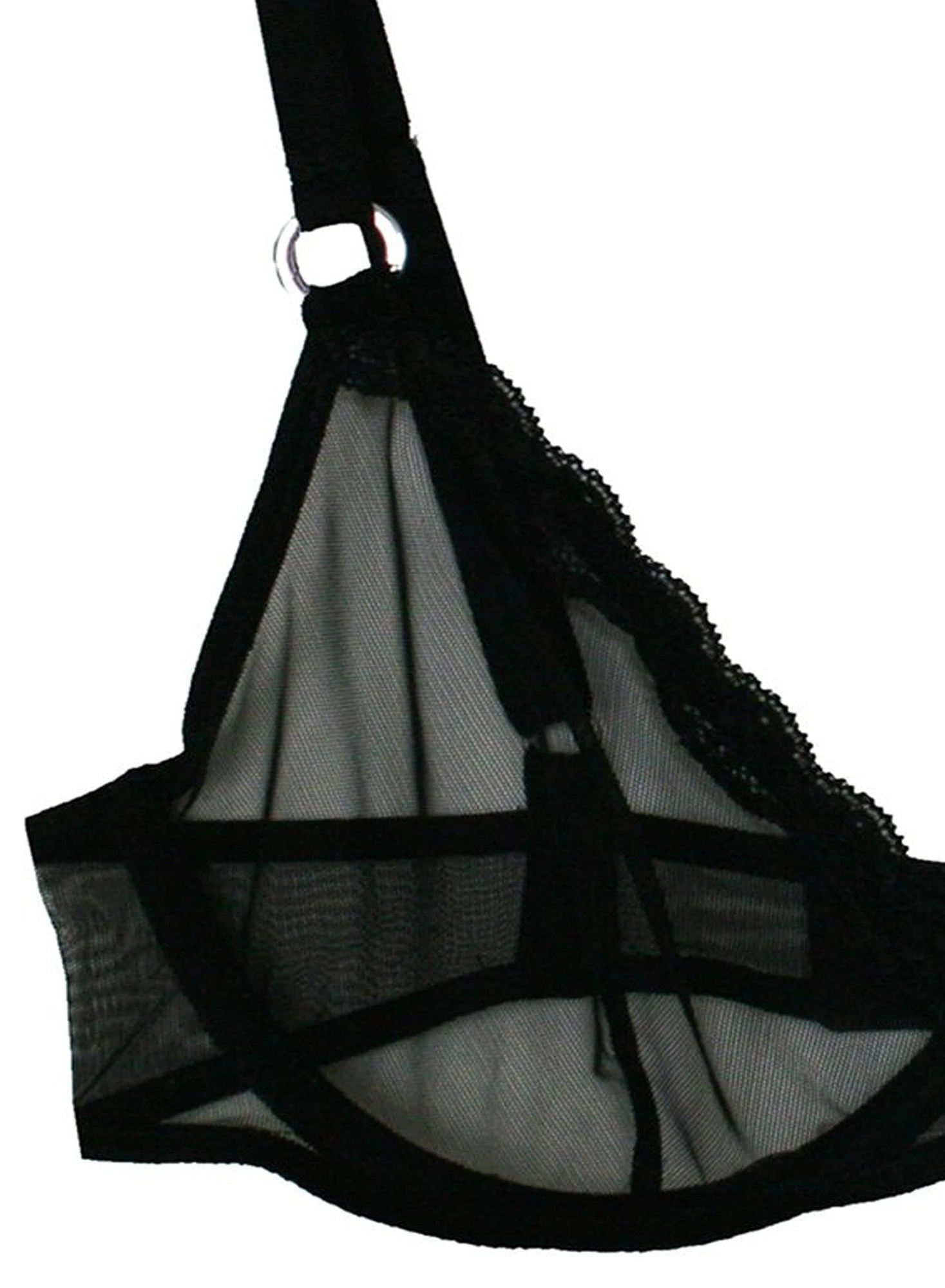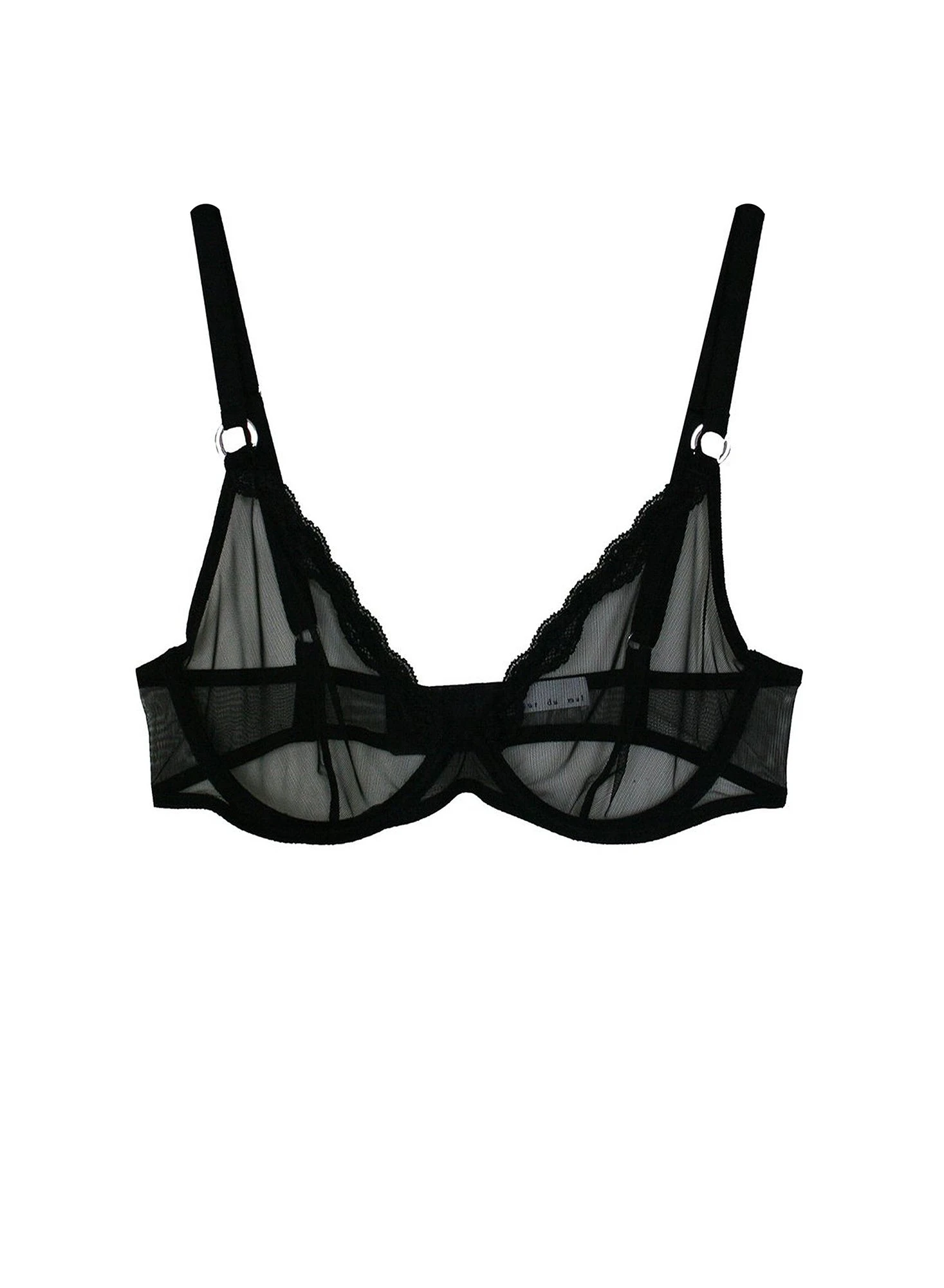 Our cups just got fuller. Our essentiel sheer demi bra has been re-engineered to offer the perfect amount of support for extended bra sizes. Unpadded lace-trimmed cups. Offers support and sexiness, making it our most essential underpinning. Pair with the sheer tulle bikini or thong.