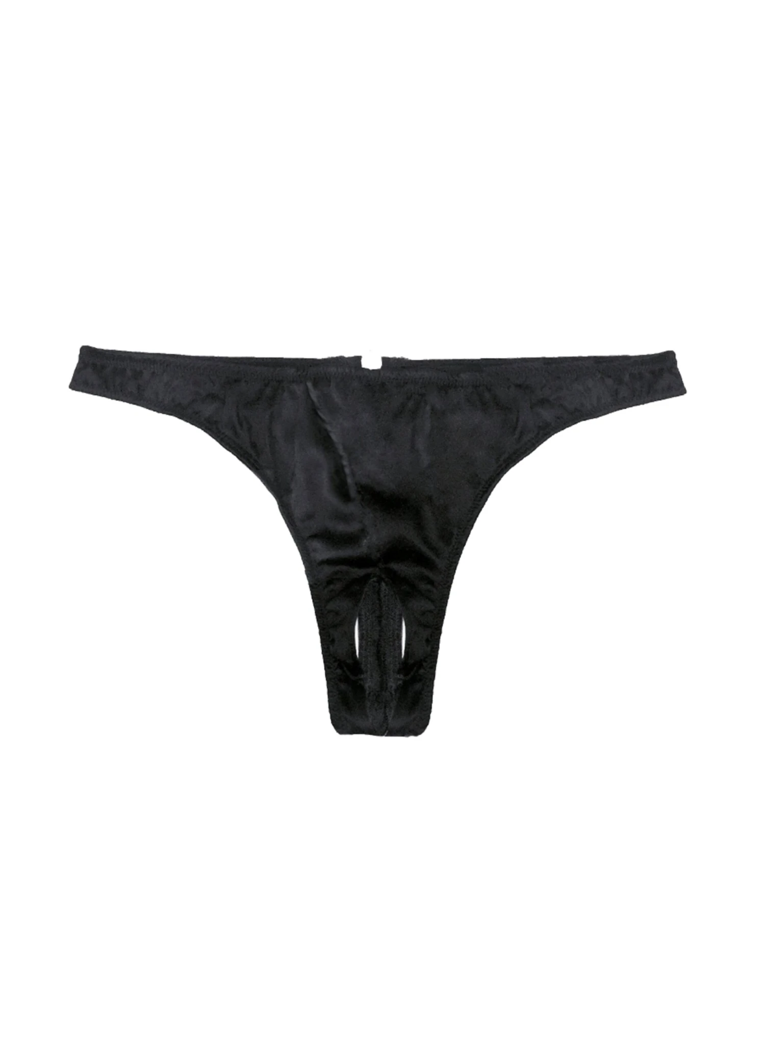 Seriously sexy. Our Luxe Crotchless Thong features o-ring cutout panel at back. Top stitch and front bow detailing. Complete the set with the Luxe Ouvert Bra.
