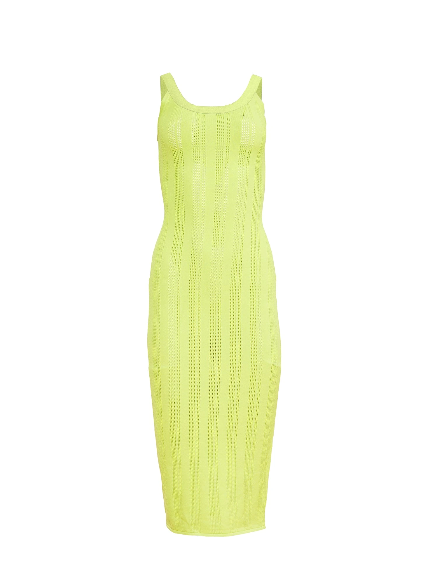 Tighten up. Our Pointelle Dress, cut from soft stretch jersey that hugs your body in all the right places. Features flattering scoop neckline with semi sheer pointelle striping for added sex appeal. Layer over your favorite Essentiels panty for a chic look that will take you from happy hour to after hours.