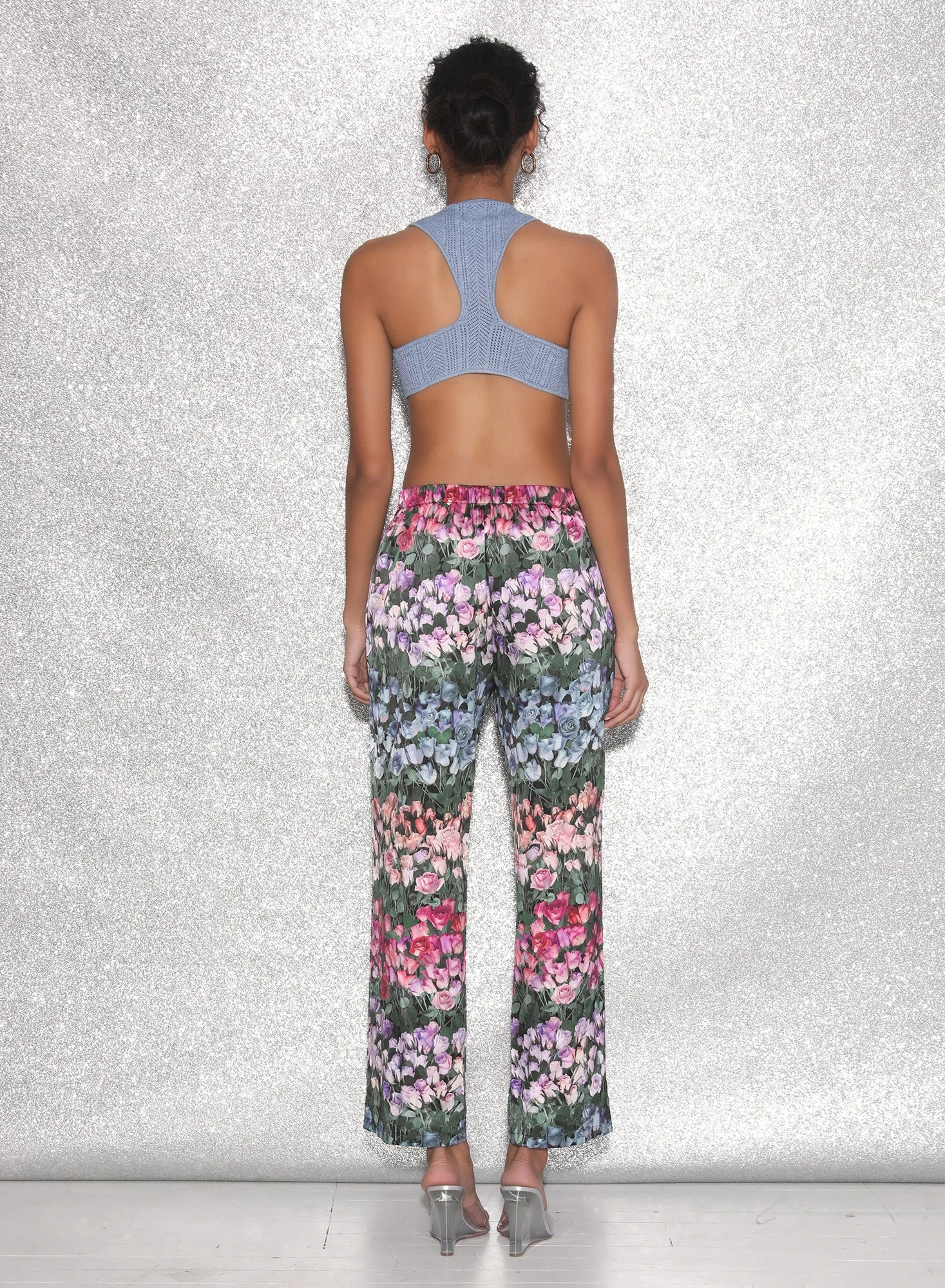 Wear the pants. Our ultra luxe Rose Stripe Pant features custom floral rose stripe print with elastic waist and pockets. Looks chic with the Pointelle Cutout Bodysuit.