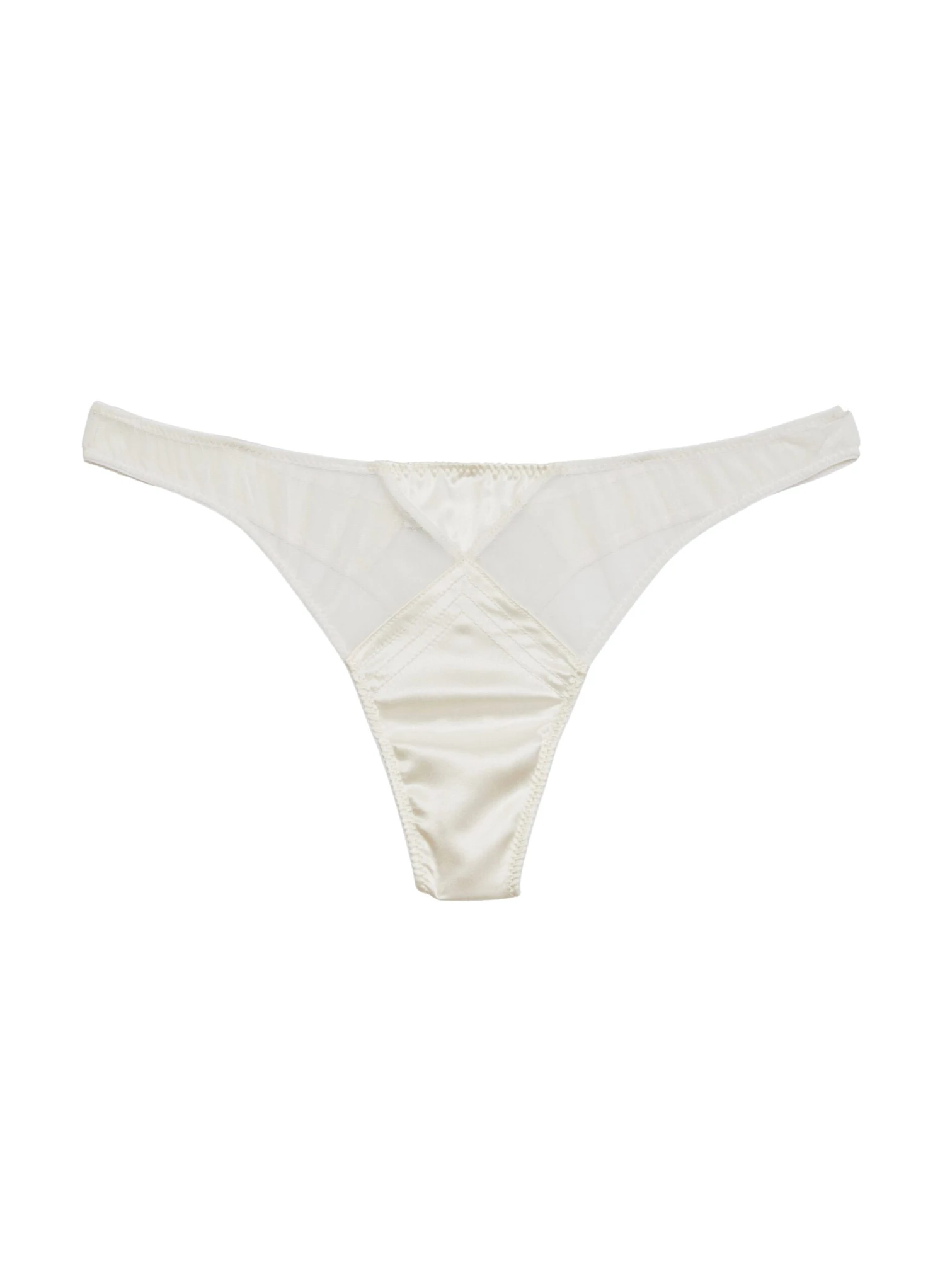 Ultra luxe silk satin thong with top stitch detailing at front and stretch tulle side panels. Pair it with the matching Top Stitch Bebe Bra.