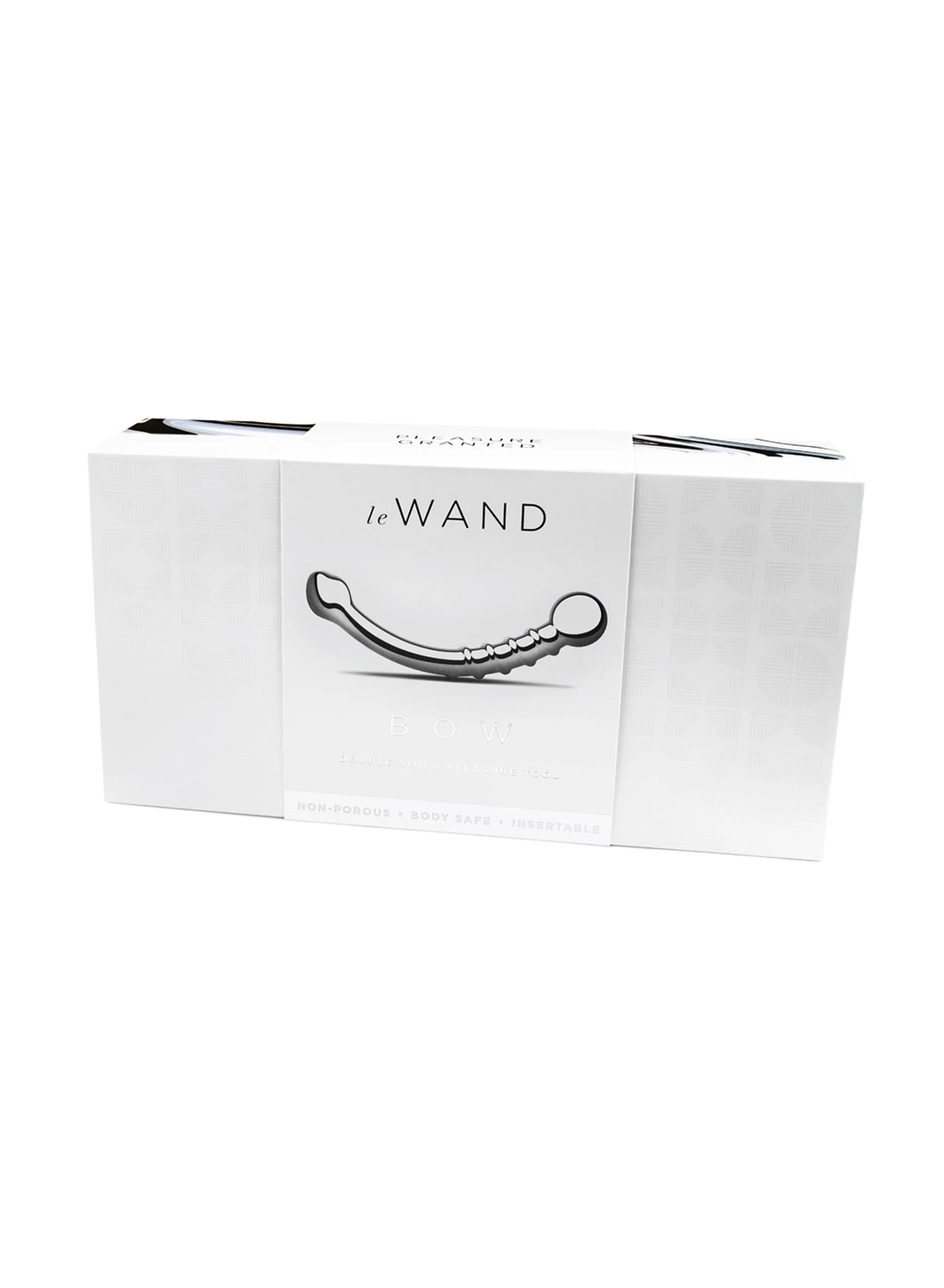 Make your toes curl. The Le Wand Bow is a solid stainless steel wand that is perfectly curved for a deep, effortless reach. Features a bulbous end that can be used as a both toy and an exerciser. Swirl ridges provide additional internal stimulation, while the smaller tear drop end is perfect for a satisfying, targeted massage. Perfect for solo sessions or partnered playtime, the Le Wand Bow is sleek, chic, and always gets you there.